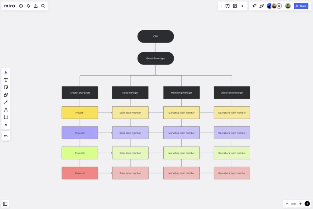 Asegurarse de que el organigrama sea fácilmente accesible para todos (ya sea en una intranet, en un documento compartido o en un tablero físico) fomenta la transparencia y mejora la comunicación interna. Permite a los empleados navegar la organización de manera más efectiva y reduce las preguntas sobre quién hace qué o a quién contactar para un tema específico.