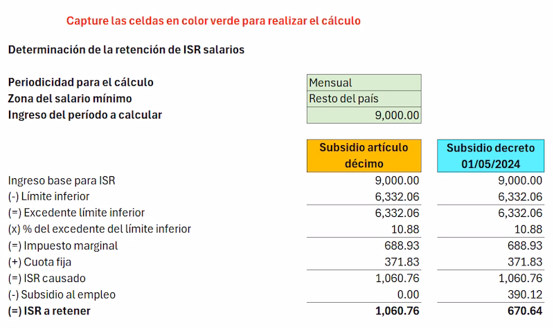 • Si el ISR es mayor que el subsidio, el subsidio se resta del ISR a retener. La retención de ISR final es menor.