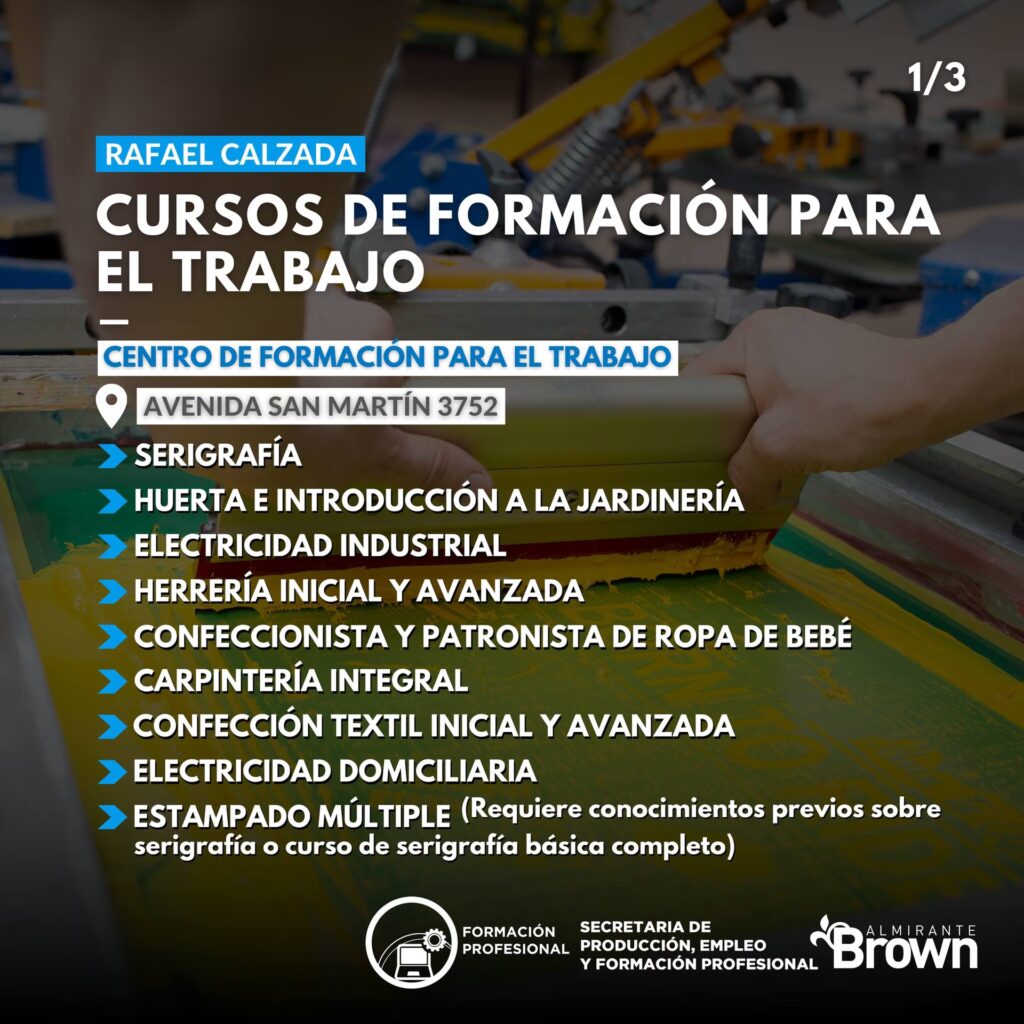 - Artes y Oficios (carpintería, herrería, confección, panadería, gastronomía, etc.)
