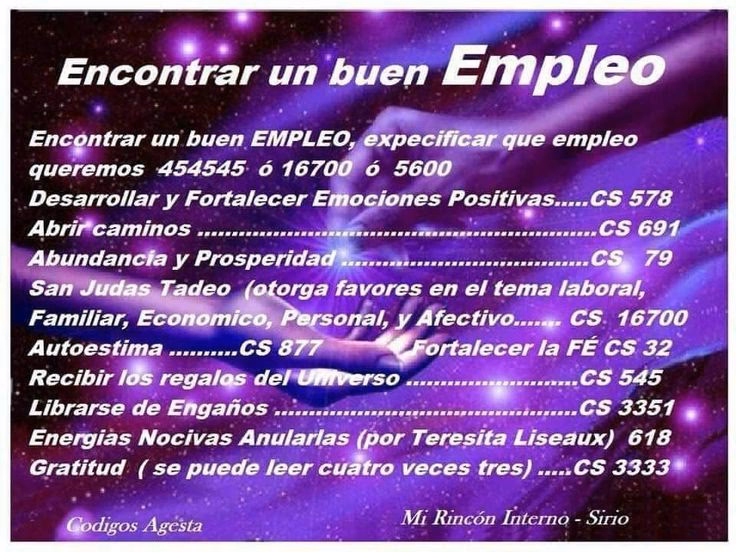 Para Encontrar Empleo (Especificar Cuál)-Código Sagrado 454545, 16700 y 5600 (cualquiera de los 3).