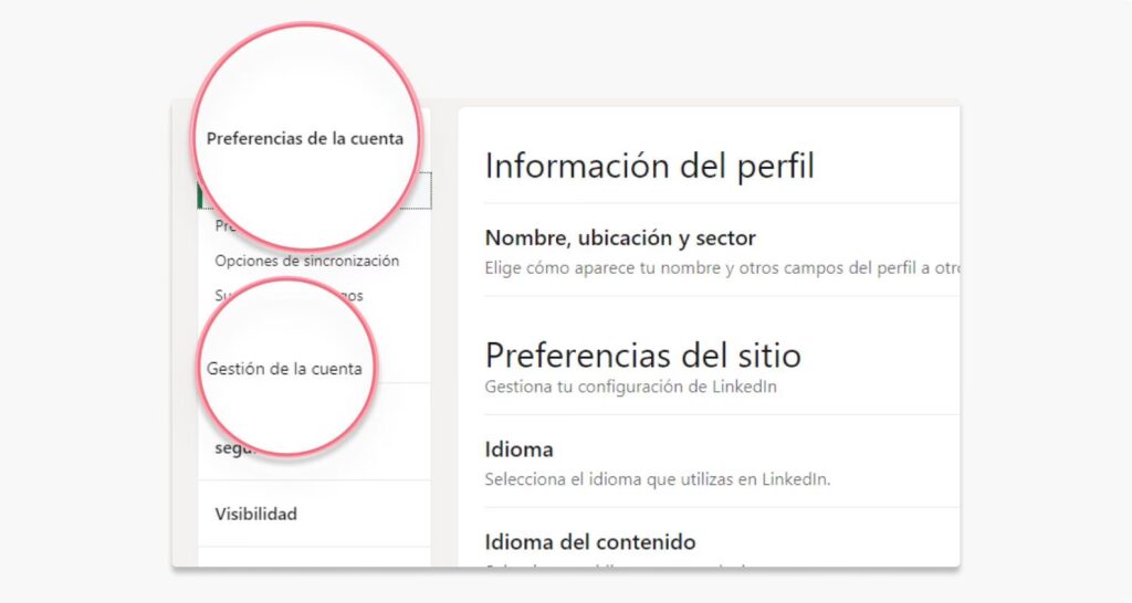 - Navega a la Sección de Gestión de Cuenta: Dentro de 'Configuración y privacidad', busca la sección 'Preferencias de cuenta'. Dentro de esta, encontrarás una subsección llamada 'Gestión de cuentas'.
