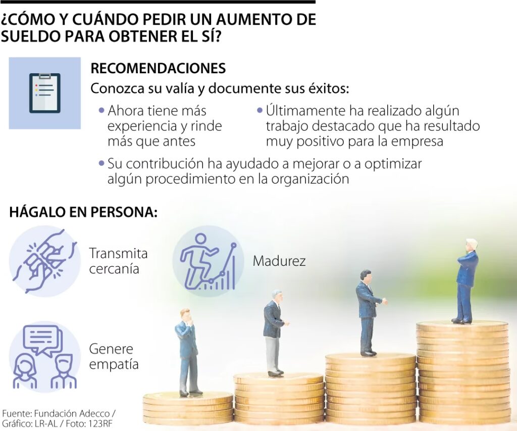 El momento oportuno es clave: Elegir el momento adecuado para tu solicitud puede influir significativamente en el resultado. Es conveniente pedir un aumento durante las revisiones de desempeño o cuando la empresa está planificando su presupuesto fiscal para el próximo año. Evita momentos de incertidumbre financiera o inmediatamente después de un fracaso de proyecto. Por ejemplo, si tu empresa acaba de anunciar despidos, no es el mejor momento para pedir más dinero.