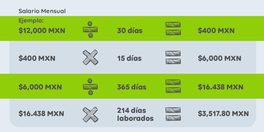 - Salario Diario: $12,000 / 30 = $400 pesos