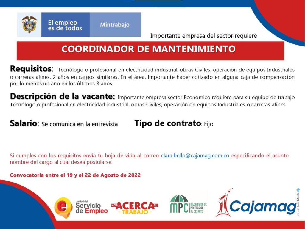 - Coordinador de Mantenimiento de Planta: Se enfoca en el mantenimiento de sistemas y equipos industriales, como cintas transportadoras, sistemas eléctricos, maquinaria de producción, etc., apoyando a supervisores y técnicos en un entorno de fabricación o producción.
