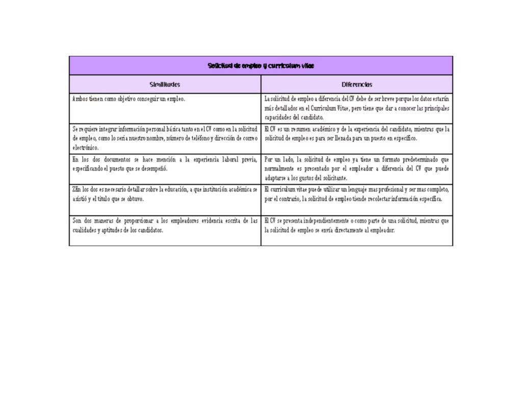 | Característica | Solicitud de Empleo | Currículum (Resume) | Curriculum Vitae (CV) |
