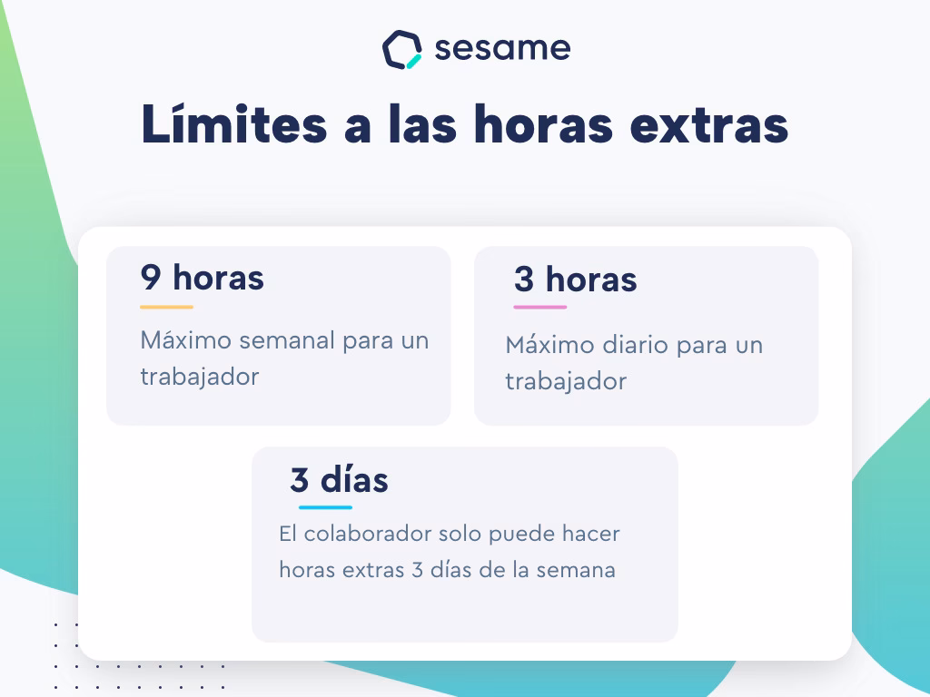 | Límite Diario/Semanal | N/A (límite anual) | 3h/día, 9h/sem (dobles), exceso triple | 2h/día, 12h/sem |