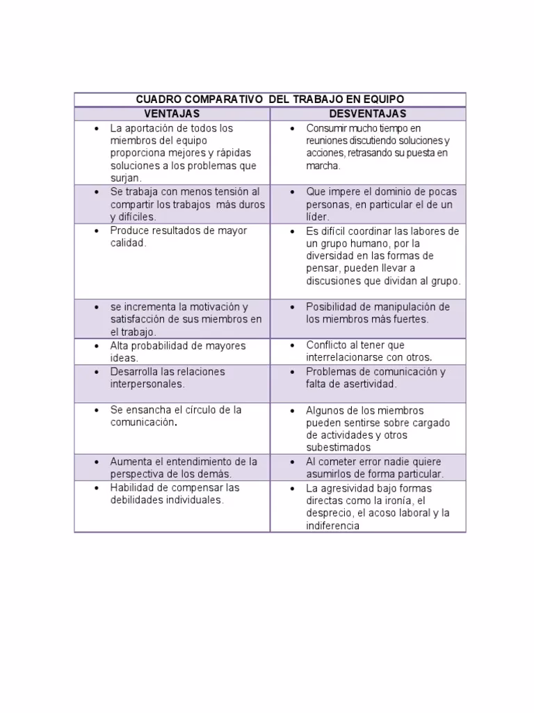| Aspecto | Trabajo Individual | Trabajo en Equipo (Potenciales Desventajas) |