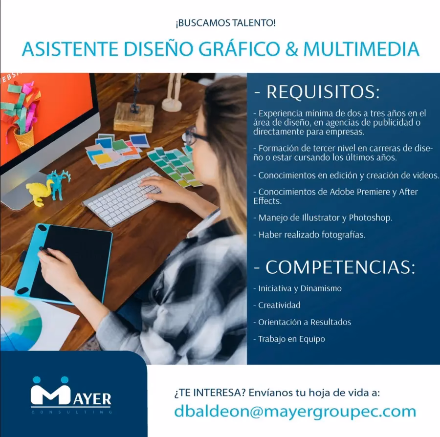 Se requieren habilidades creativas (diseño, narrativa), técnicas (dominio de software de diseño, animación, video, web) y blandas (comunicación, trabajo en equipo, gestión del tiempo).