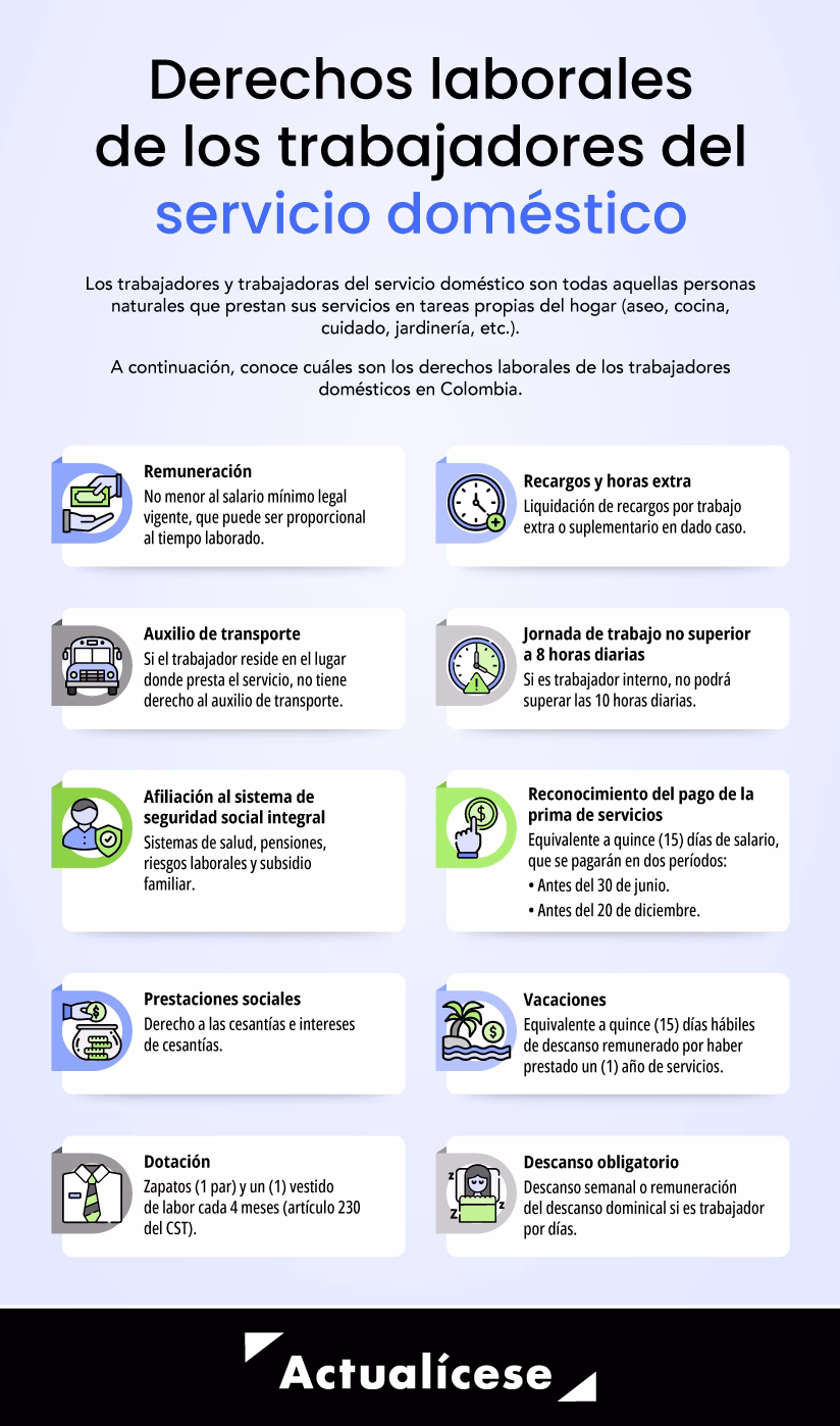Para los trabajadores(as) que residen en el hogar, el día domingo es un día de descanso irrenunciable garantizado por ley. Los días festivos también son de descanso obligatorio.