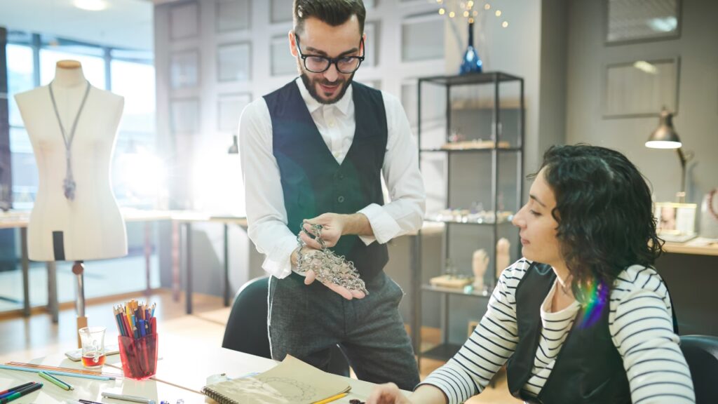 • Habilidades de Comunicación: Es fundamental poder interactuar con clientes, entender sus necesidades y comunicar ideas de diseño de manera efectiva, especialmente cuando se trabaja en piezas personalizadas. También es importante para colaborar con orfebres y equipos de producción.