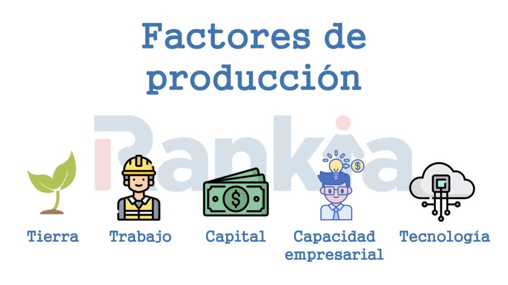- Los factores clásicos son Tierra, Trabajo y Capital. En las economías modernas, se suelen añadir la Tecnología y la Capacidad Empresarial.