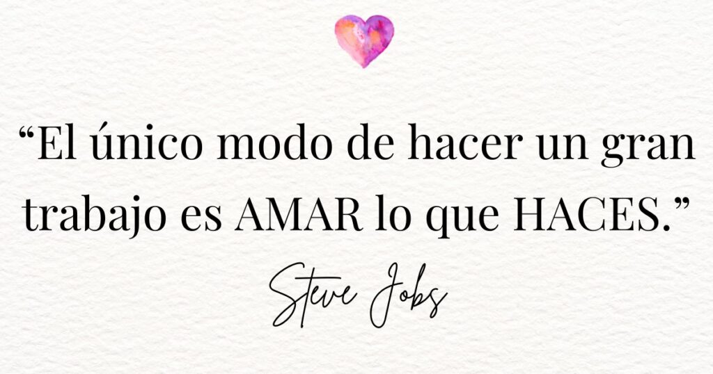 "Tu trabajo va a llenar una gran parte de tu vida, y la única forma de estar verdaderamente satisfecho es hacer lo que crees que es un gran trabajo. Y la única forma de hacer un gran trabajo es amar lo que haces." - Steve Jobs