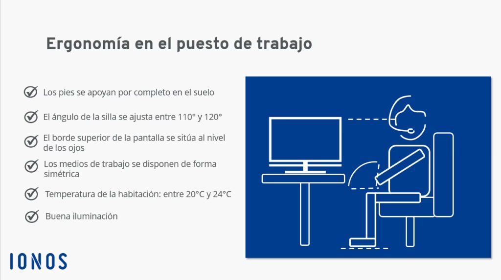 | Iluminación | Adecuada, sin brillos ni reflejos en la pantalla. Evita fatiga visual. | Insuficiente, excesiva o con reflejos. Causa fatiga visual, dolores de cabeza. |