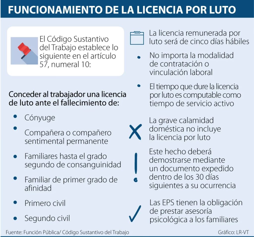 En Colombia, la licencia por luto es un derecho laboral establecido y regulado por la Ley 1280 de 2009. Esta ley modificó el Código Sustantivo del Trabajo para incluir de manera obligatoria este permiso tanto para el sector público como para el privado. Antes de esta ley, el manejo de estas situaciones dependía en gran medida de la voluntad del empleador o de lo estipulado en pactos colectivos o reglamentos internos, lo que generaba inequidad.