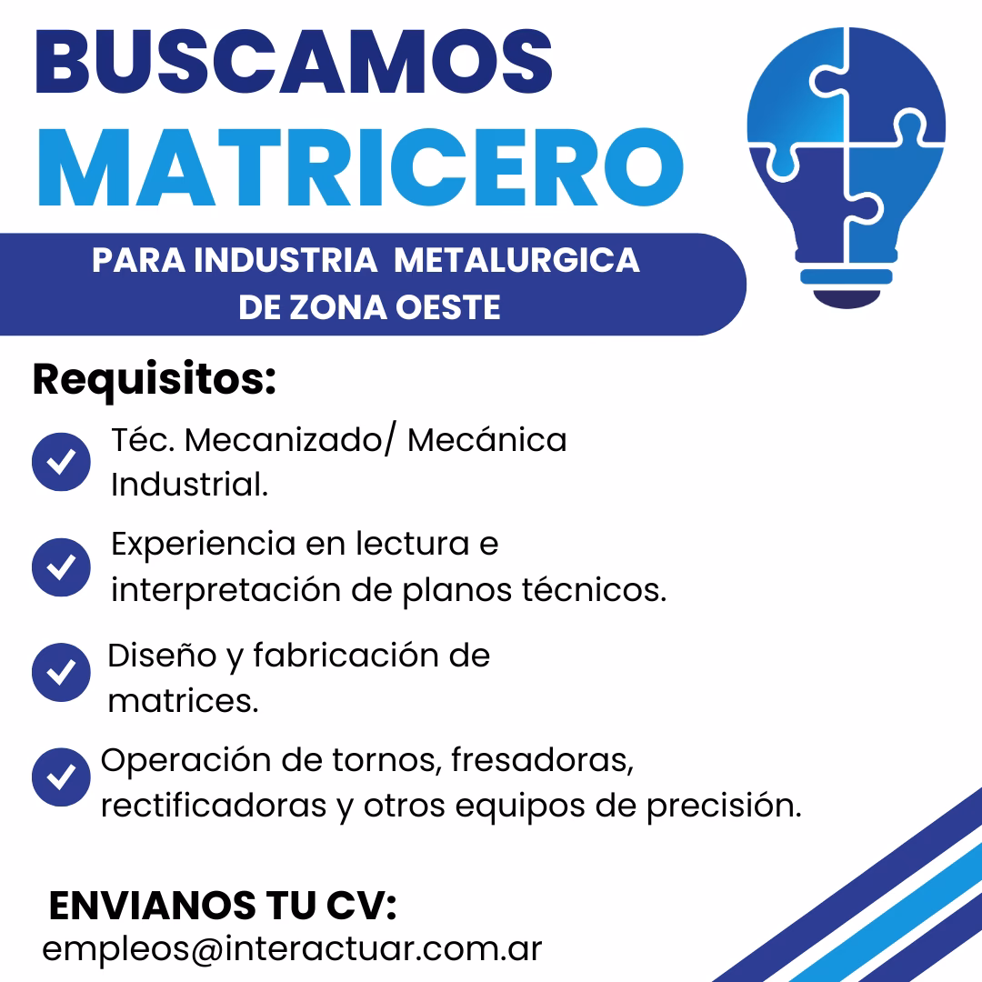 Para desempeñarse exitosamente como matricero se necesita una combinación de habilidades técnicas y personales: