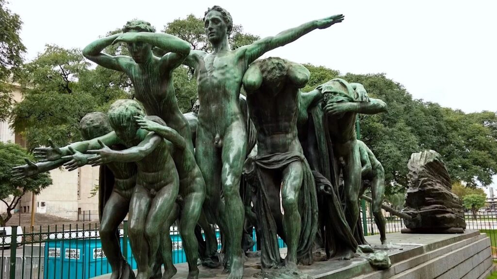 Realizado en París en el año 1907, este gran grupo escultórico tardó varios años en llegar a suelo argentino, siendo inaugurado finalmente en 1922 en el Museo Nacional de Bellas Artes. Su ubicación ha cambiado a lo largo del tiempo, pasando por Plaza Dorrego antes de encontrar su lugar definitivo en 1937 en su localización actual. Esta historia de traslados subraya la importancia y el valor que la sociedad le ha otorgado a esta pieza a lo largo de las décadas.