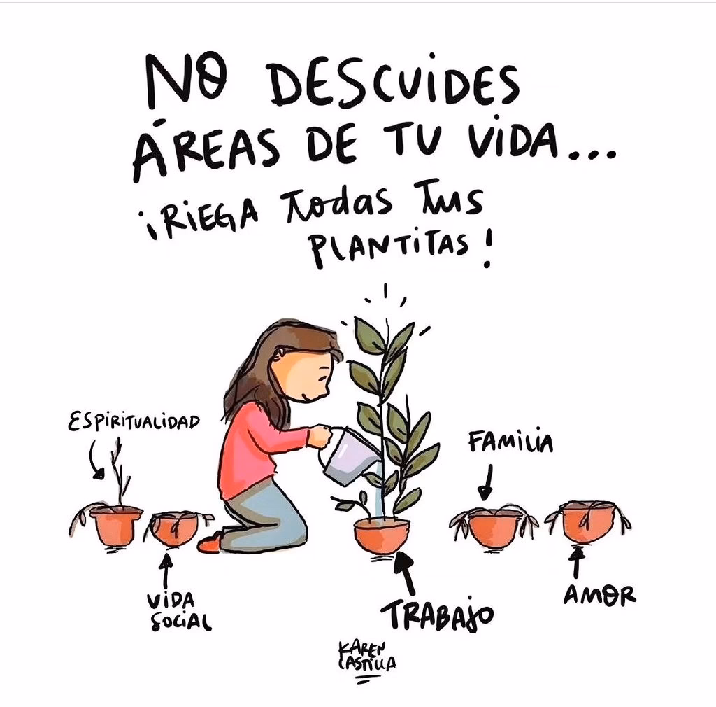 | Salud Personal | Buena, energía, bienestar físico y mental | Problemas de salud (insomnio, dolores, ansiedad, etc.) |