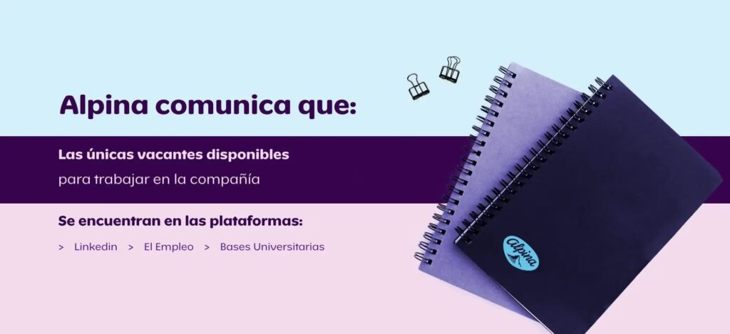 Para obtener este tipo de información, los interesados deben dirigirse a las secciones de empleo o 'Trabaja con nosotros' en el sitio web oficial de Alpina o en portales de búsqueda de empleo reconocidos.