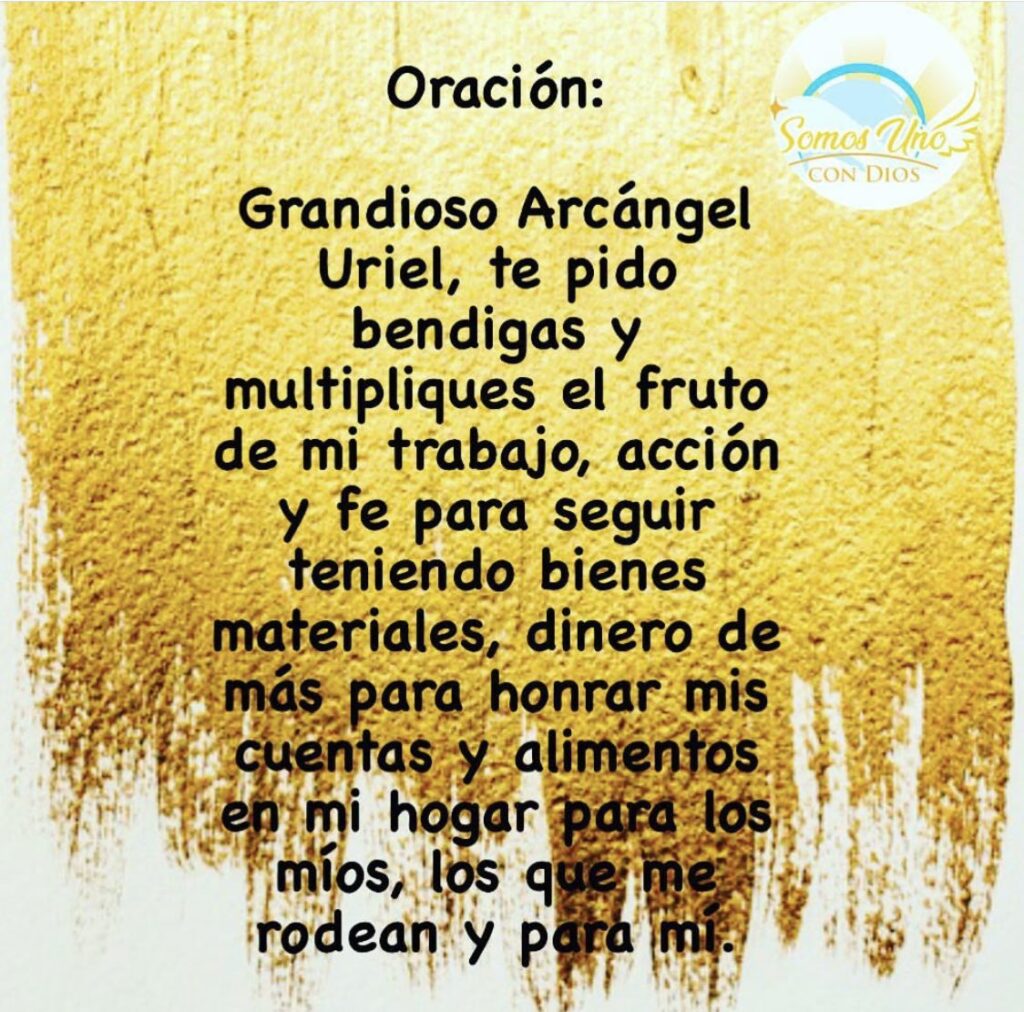 ¡Oh! San Uriel Arcángel, apiádate de mí para que la escasez no consuma mis días, pues tengo la certeza de que con Dios siempre lo tendré todo. Amén.