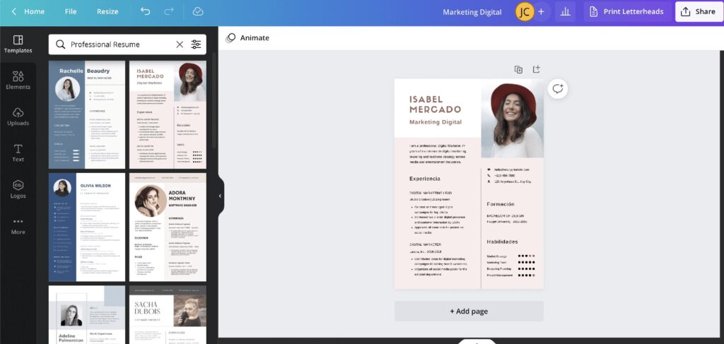 - Uso de plantillas y diseños.