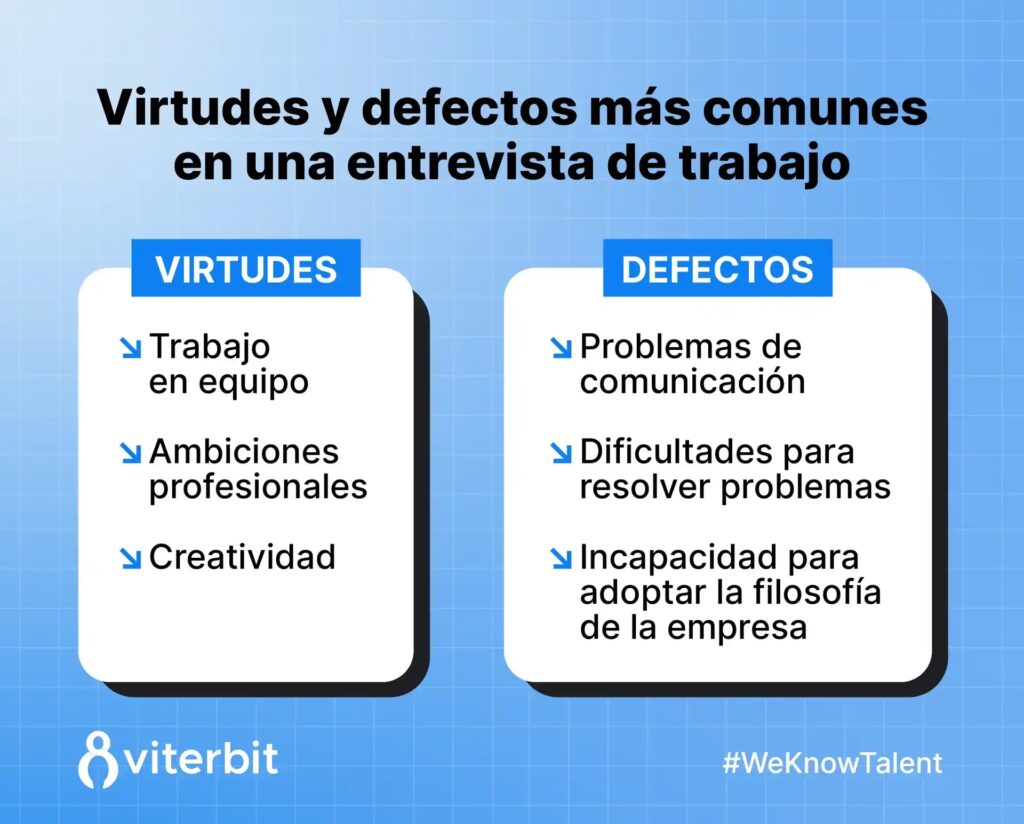 - Rasgos negativos de personalidad sin plan de mejora: "Soy perezoso", "Soy desorganizado" (a menos que muestres un plan de mejora *muy* convincente).