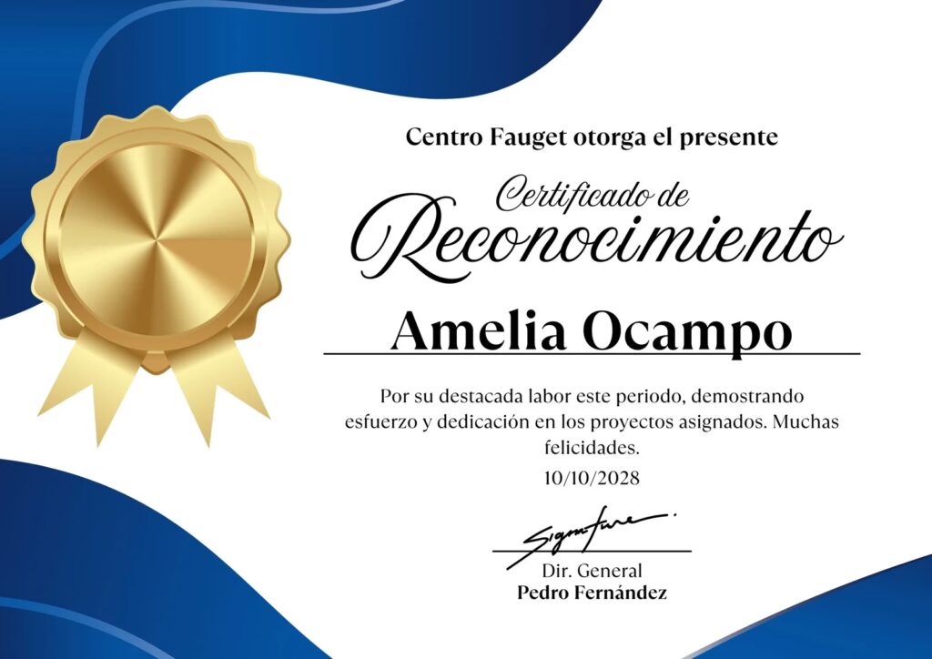 • Calidad del Soporte: Si es un reconocimiento físico (certificado, placa), la calidad del material y la impresión o grabado también comunican el valor que se le da. Un documento bien presentado se valora más.