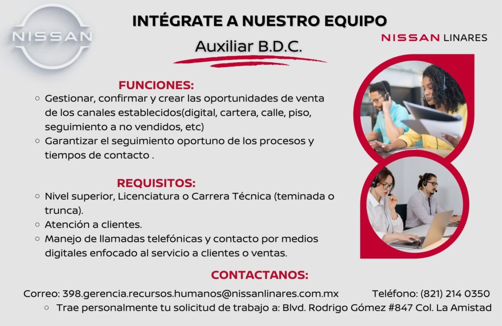 Generalmente, las grandes empresas como Nissan gestionan sus procesos de reclutamiento a través de sus sitios web oficiales en la sección de carreras o empleo, o mediante portales de empleo reconocidos. Para obtener información precisa sobre cómo postularse a una vacante o conocer los paquetes de beneficios (como seguros médicos, planes de jubilación, descuentos en vehículos, oportunidades de desarrollo profesional, etc.), se recomienda encarecidamente visitar las fuentes oficiales de Nissan.